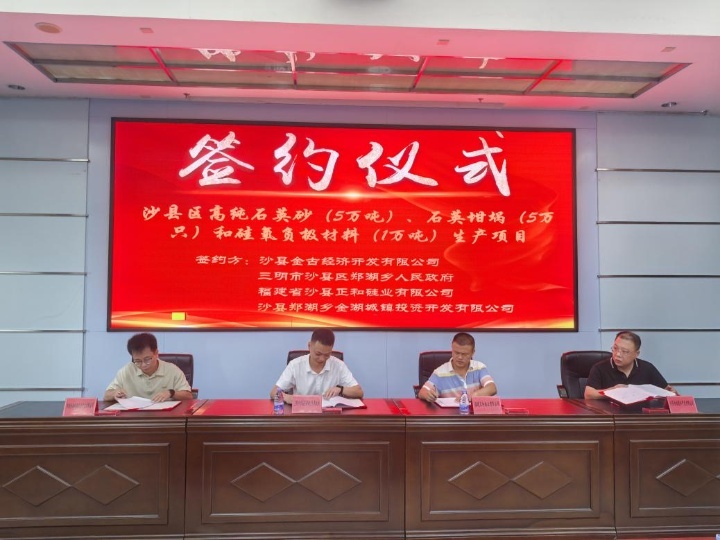 8月30日上午,沙縣區高純石英砂、石英坩堝和硅氧負極材料等生產項目簽約儀式在沙縣區園發集團舉行。