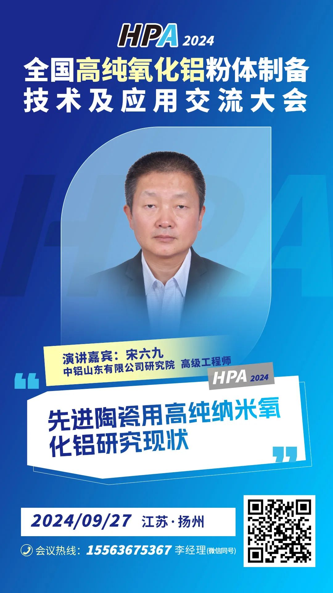 可見,制備方法不同,所得高純納米氧化鋁的性質也不盡相同,并最終影響陶瓷材料的使用性能。因此,深入研究高純納米氧化鋁粉體的制備工藝具有重要意義。9月27日,中國粉體網將在江蘇·揚州舉辦2024全國高純氧化鋁粉體制備技術及應用交流大會。我們邀請到中鋁山東有限公司研究院宋六九高級工程師出席本次大會并作題為《先進陶瓷用高純納米氧化鋁研究現狀》的報告。
