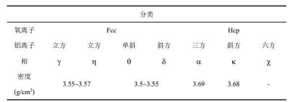 氧化鋁相的分類及密度