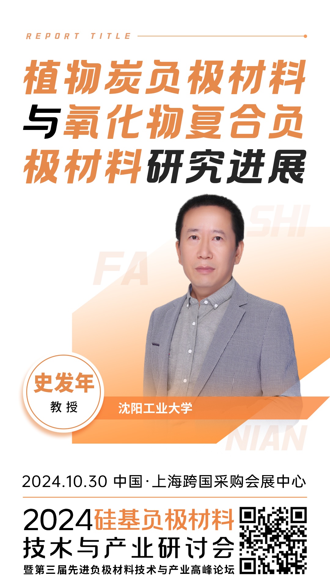 2024年10月29-31日在上海跨國采購會展中心,由北京粉體技術協會與柏德英思展覽(上海)有限公司聯合主辦2024硅基負極材料技術與產業研討會暨第三屆先進負極材料技術與產業高峰論壇。屆時來自沈陽工業大學的史發年教授將作題為《植物炭負極材料與氧化物復合負極材料研究進展》的報告。報告主講人將介紹一種提高植物炭的電化學性能的思路與對策,以及通過金屬配合物熱分解技術獲得炭復合的具有高比容量和充放電循環穩定性的金屬氧化物材料。