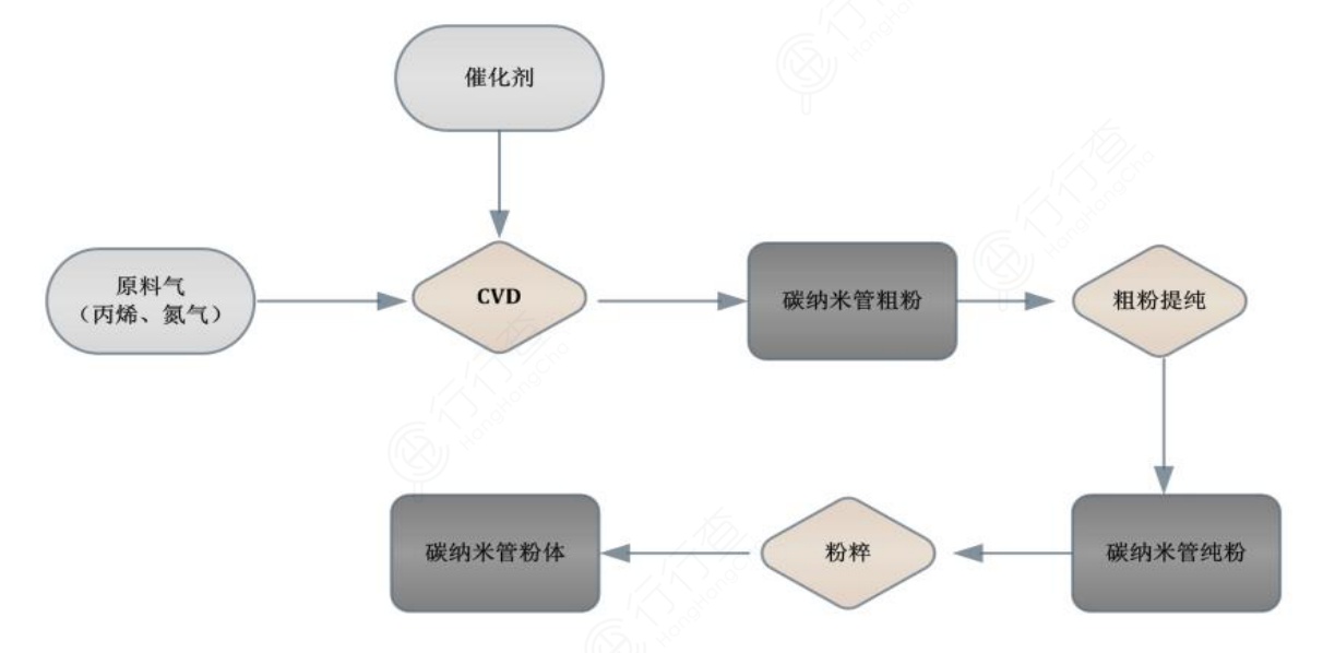 天奈科技制造碳納米管粉體主要采取化學氣相沉積法,其原理是在催化劑的作用下,使反應化合物中的碳分解出來,并在催化劑的作用下生長成為碳納米管。