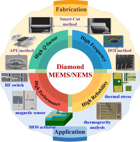 新一代半導(dǎo)體-金剛石,具有5.5eV的超寬帶隙,被稱為終極半導(dǎo)體,是當(dāng)前國際材料科學(xué)研究的前沿和熱點之一。單晶金剛石由于其無與倫比的材料特性,具有理論最高共振頻率和最高品質(zhì)因子,確保了制備器件的靈敏度、可靠性和響應(yīng)速度,成為克服傳統(tǒng)半導(dǎo)體基MEMS本征缺陷的理想材料。