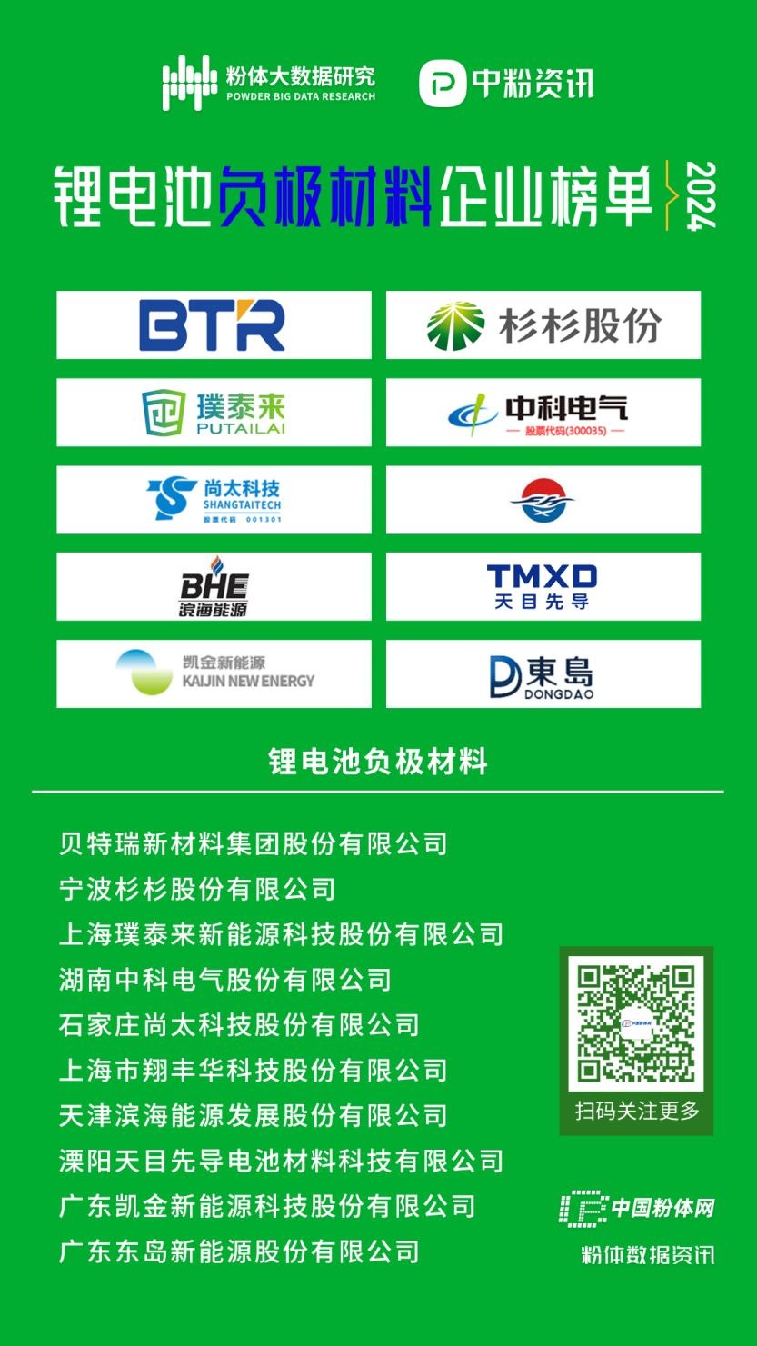 依據(jù)各企業(yè)官網(wǎng)、半年報及行業(yè)公開信息等,2024年國內十大鋰電池負極材料企業(yè)為貝特瑞、杉杉股份、璞泰來、中科電氣、尚太科技、翔豐華、濱海能源、天目先導、凱金新能源、東島新能源。