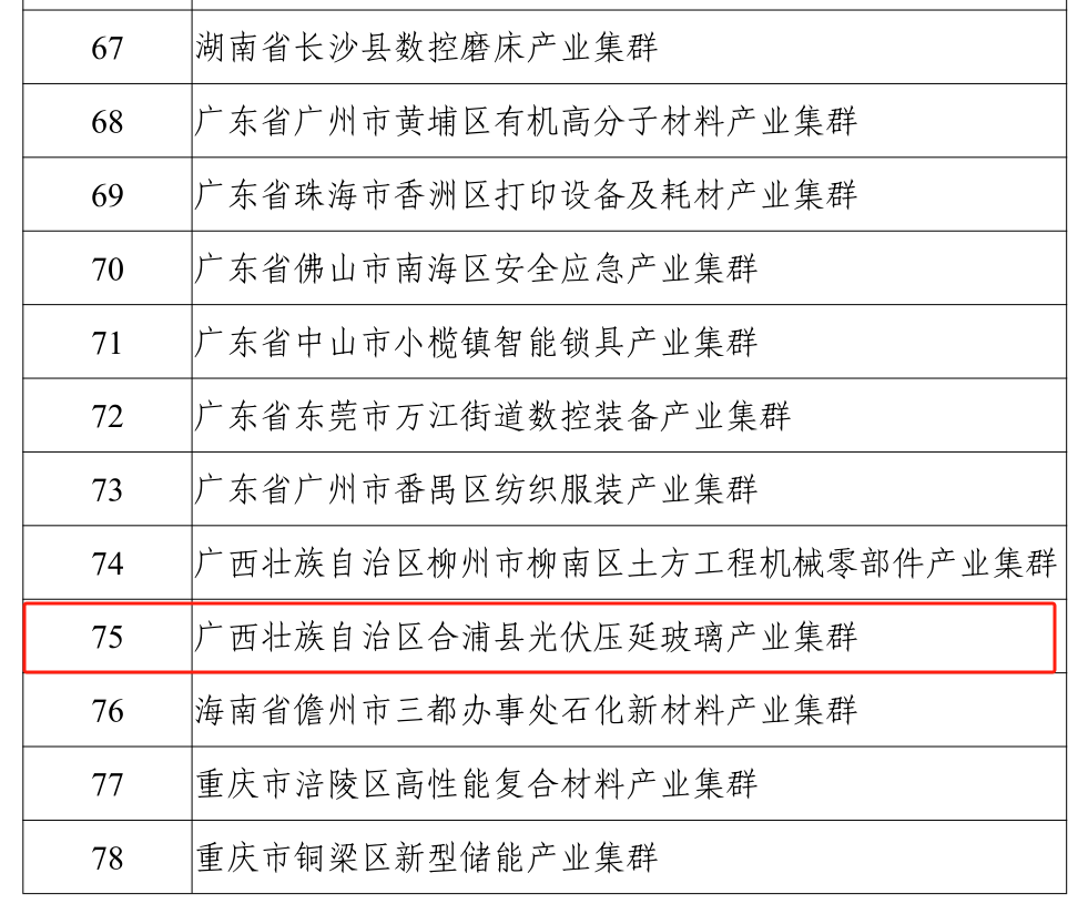 中國粉體網訊 近日,工業和信息化部印發《關于2024年度中小企業特色產業集群名單的通告》,新認定100個國家級中小企業特色產業集群,認定有效期為三年。其中,廣西壯族自治區合浦縣光伏壓延玻璃產業集群上榜。