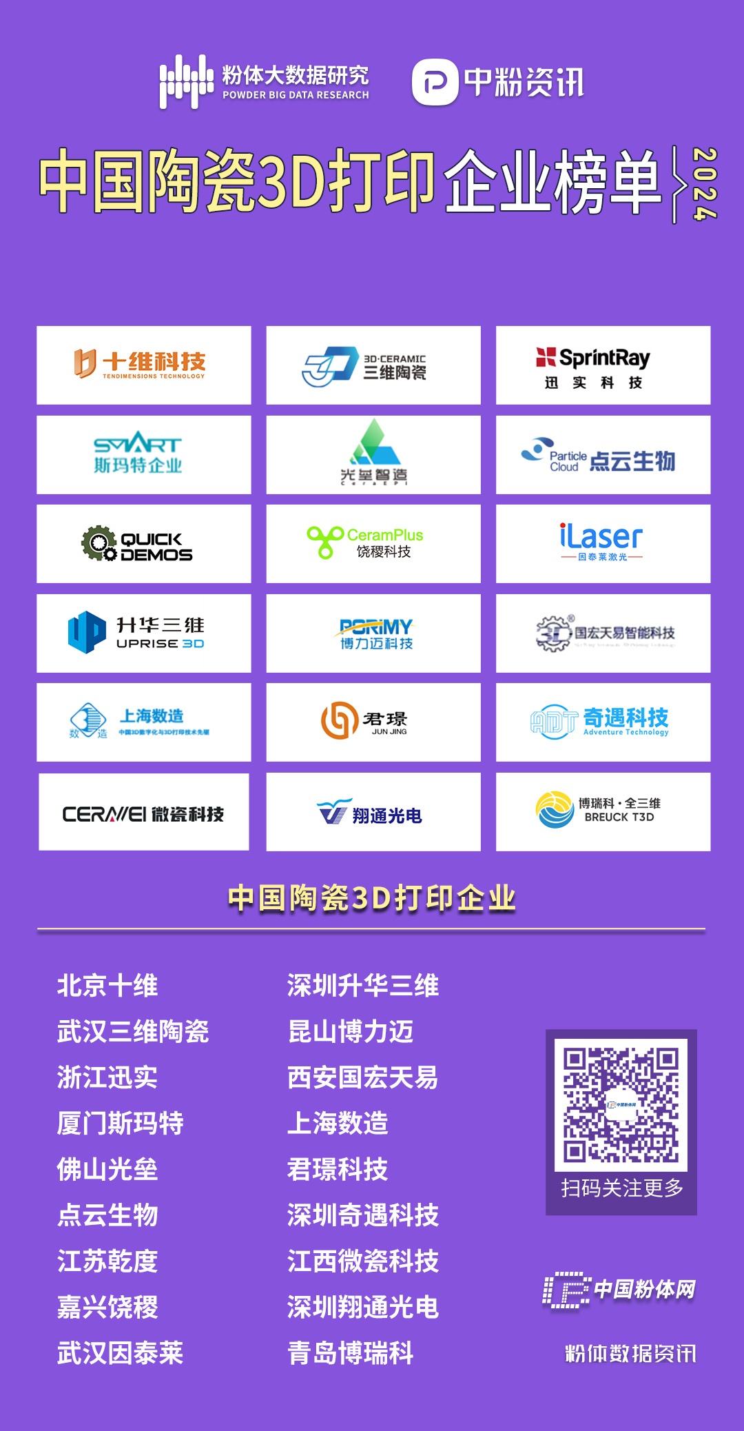 國內(nèi)陶瓷3D打印企業(yè)榜單如下(企業(yè)排名不分先后):