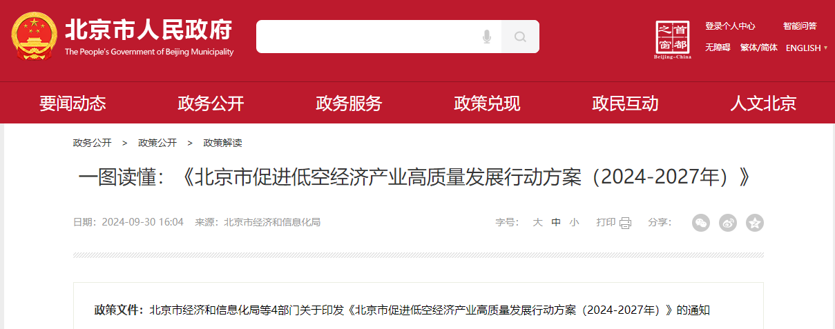 北京市:《北京市促進低空經濟產業高質量發展行動方案(2024-2027年)》