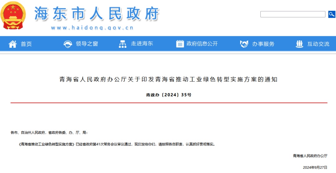 青海。骸肚嗪J⊥苿庸I綠色轉型實施方案》的通知