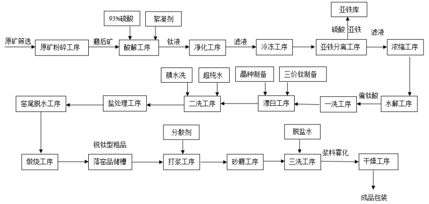 食品級鈦白粉制備工藝流程圖