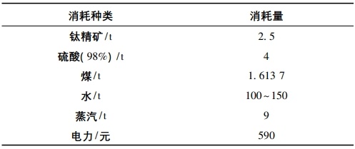某硫酸法鈦白企業單噸鈦白物耗能耗情況