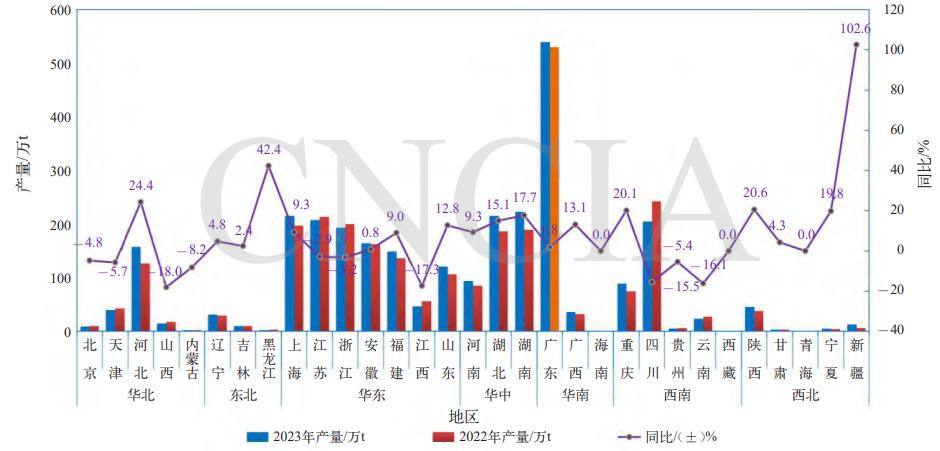 2023年中國涂料行業規模以上企業各省涂料產量分布圖