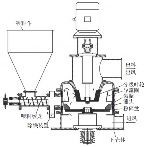 高速機械沖擊磨利用繞軸高速旋轉的轉子向物料傳輸動量,使物料與襯體激烈碰撞而得到超微粉,此過程中產生的研磨、剪切、渦流效應可促進粉體新表面的生成。