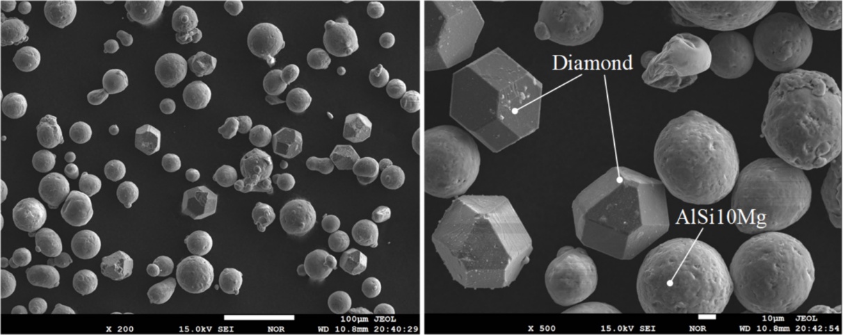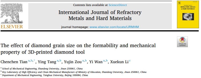 山東大學機械工程學院的田晨晨研究團隊利用選區激光熔化工藝制備了3D打印金屬結合劑金剛石工具,其中金屬粉末為AlSi10Mg粉末和金剛石粉末的混合物。相關成果以“The effect of diamond grain size on the formability and mechanical property of 3D-printed diamond tool”為題發表在International Journal of Refractory Metals and Hard Materials期刊上。