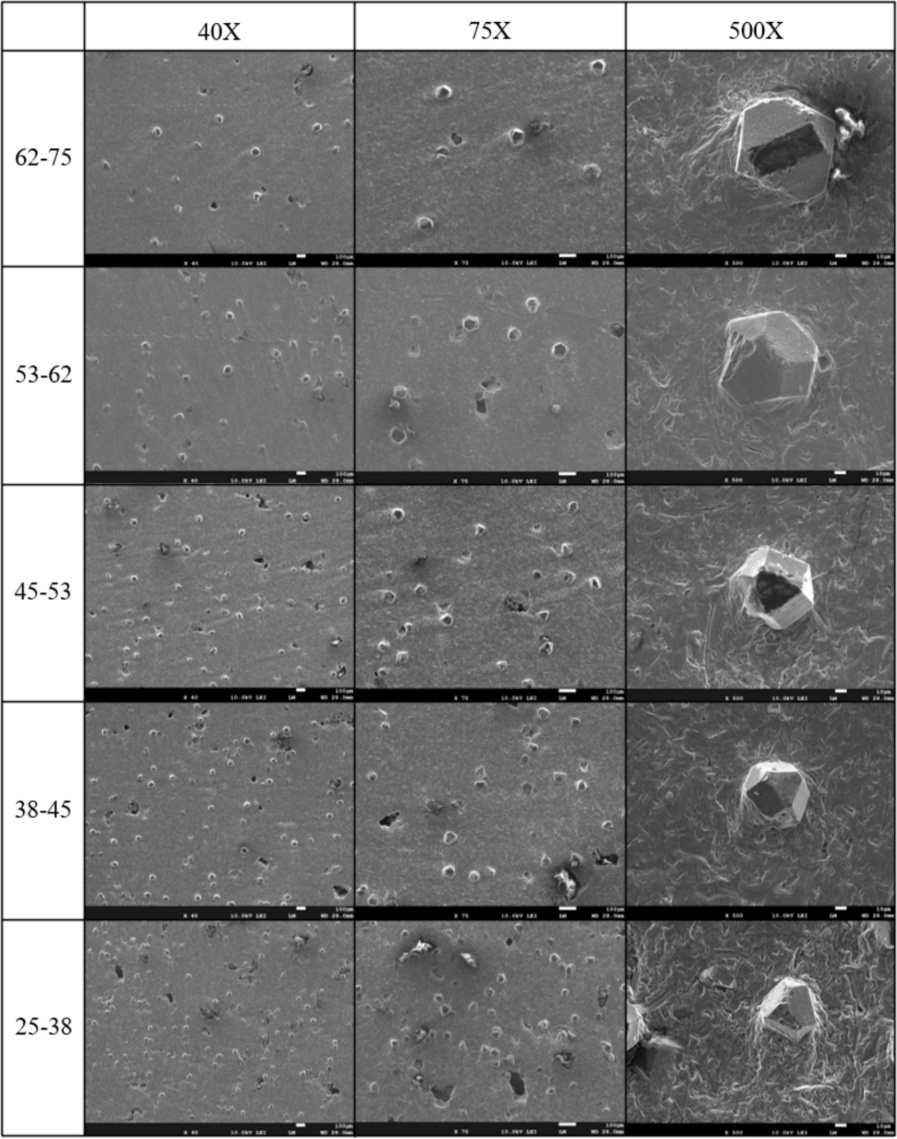 (1)當金剛石晶粒尺寸從500目到200目變化時,3D打印金剛石工具的相對密度在0.91到0.96之間。此外,隨著金剛石晶粒尺寸的減小,3D打印金剛石工具的相對密度也會下降。