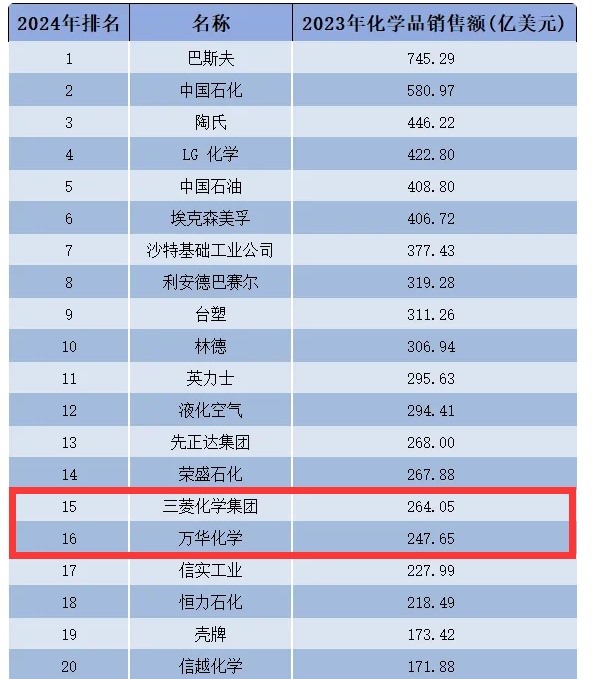 我們中國的企業排除了中石油、中石化、中化等這幾家巨頭,剩下能夠跟它形成對照的同類企業當屬萬華化學了,兩家企業在最新的全球化工企業排行榜中都進入了前20強,按年銷售額來看不相上下。