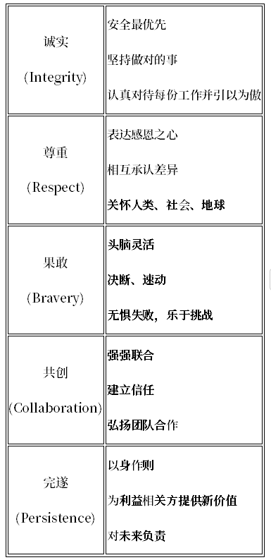三菱化學又將實現KAITEKI的整個過程,分解成五種精神以及每種精神下的三種具體的行動準則。