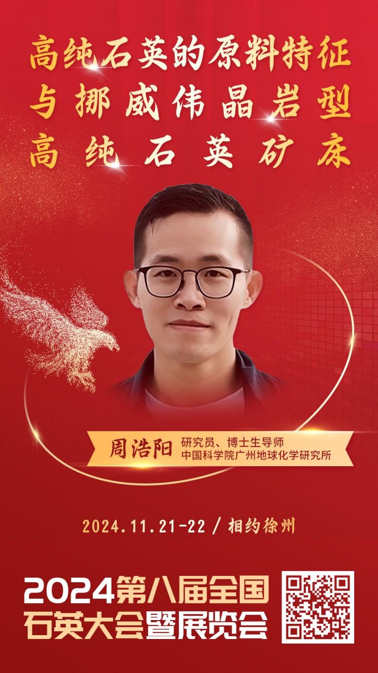 2024年11月21-22日,由中國粉體網主辦的“2024(第八屆)全國石英大會暨展覽會”將在江蘇徐州召開,中國科學院廣州地球化學研究所的周浩陽研究員、博士生導師將做《高純石英的原料特征與挪威偉晶巖型高純石英礦床》的報告,屆時,他將結合研發經驗,詳細解讀高純石英的原料特征與挪威偉晶巖型高純石英礦床。并基于區域地質和礦床地質,結合石英的原位成分特征,介紹偉晶巖型高純石英礦床的成因模型。