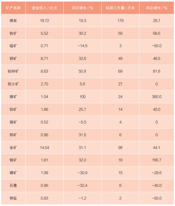 2023年主要礦產勘查資金投入和鉆探工作量完成情況