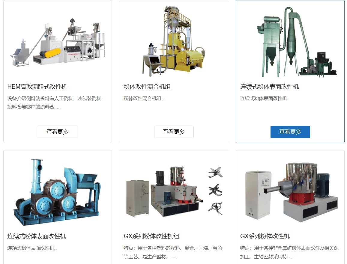 另有GX-10至GX-1300小型至大型粉體表面改性機。適用于各種生產能力及各種粉體種類。包括:輕(重)質碳酸鈣、高嶺土、重晶石、滑石、長石、石墨、葉蠟石、水鎂石、硅藻土、氧化鋁、氫氧化鋁、氧化鎂、氧化鋅、硅微粉、硅灰石、黑硅石、沸石等。經過幾年的潛心開發與研究,生產設備得到進一步的完善,目前已成為粉體深加工生產的設備廠家。