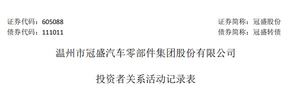 中國粉體網訊 11月4日,溫州市冠盛汽車零部件集團股份有限公司(簡稱:冠盛股份)發布10月份投資者關系活動記錄表,其中對公司的半固態電池項目的進展、時間點、銷售等方面的提問作出了詳細解答。