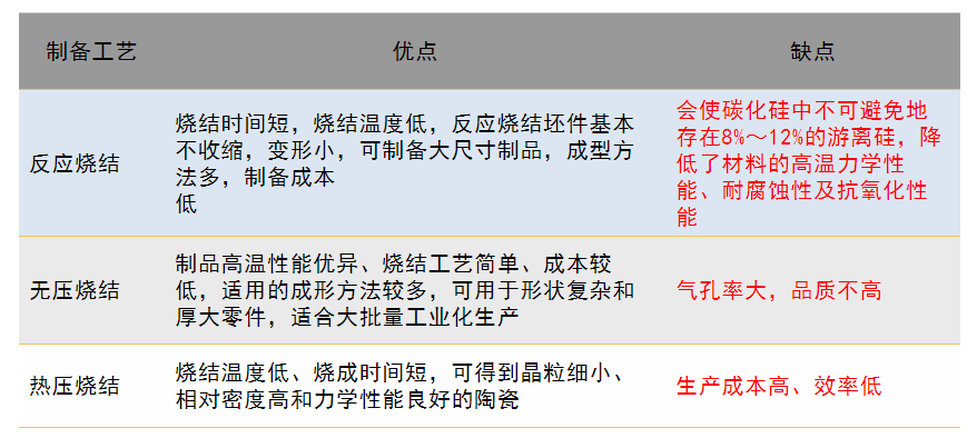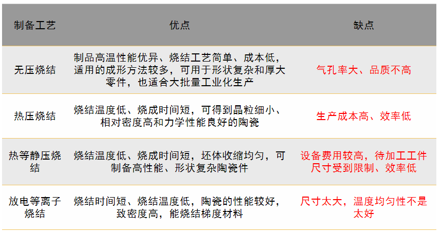 燒結(jié)碳化硅陶瓷技術(shù)較多,但是不同的燒結(jié)方式對(duì)陶瓷內(nèi)部晶粒的形狀,陶瓷致密性、材料強(qiáng)度和韌性都有較明顯不同。目前常用的燒結(jié)技術(shù)有三種: