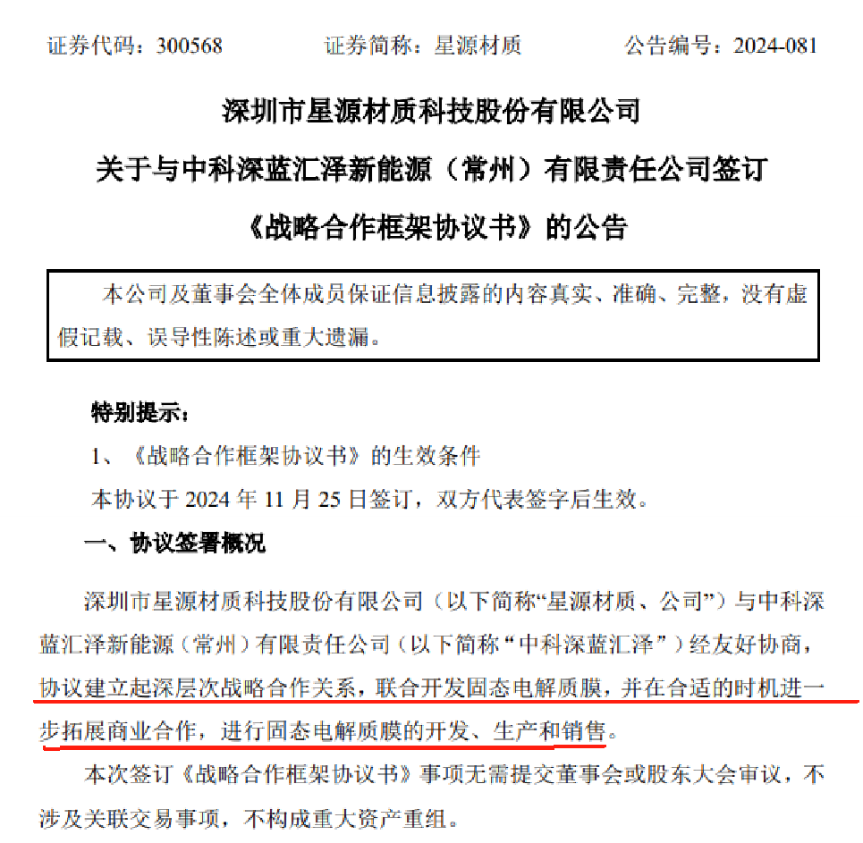 ②中科深藍匯澤在固態(tài)電池相關膜材料開發(fā)方面和星源材質展開深度合作。