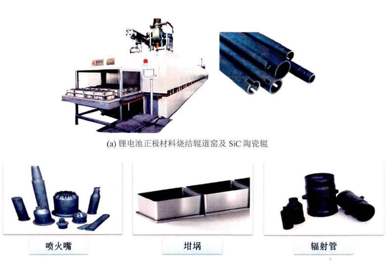 在應(yīng)用方面,高溫窯具材料、輻射管、熱交換器、脫硫噴嘴等均是反應(yīng)燒結(jié)碳化硅陶瓷的典型應(yīng)用。同時,由于碳化硅具有較低的熱膨脹系數(shù)和較高的彈性模量,以及近凈尺寸成型燒結(jié)等特點,反應(yīng)燒結(jié)碳化硅也成為空間反射鏡的理想材料。此外,隨著晶片尺寸和熱處理溫度的提高,反應(yīng)燒結(jié)碳化硅逐漸取代了石英玻璃。采用高純的碳化硅粉和高純硅可以制得包含部分硅相的高純碳化硅部件,并廣泛應(yīng)用于電子管和半導(dǎo)體晶片制造設(shè)備的支撐夾具。