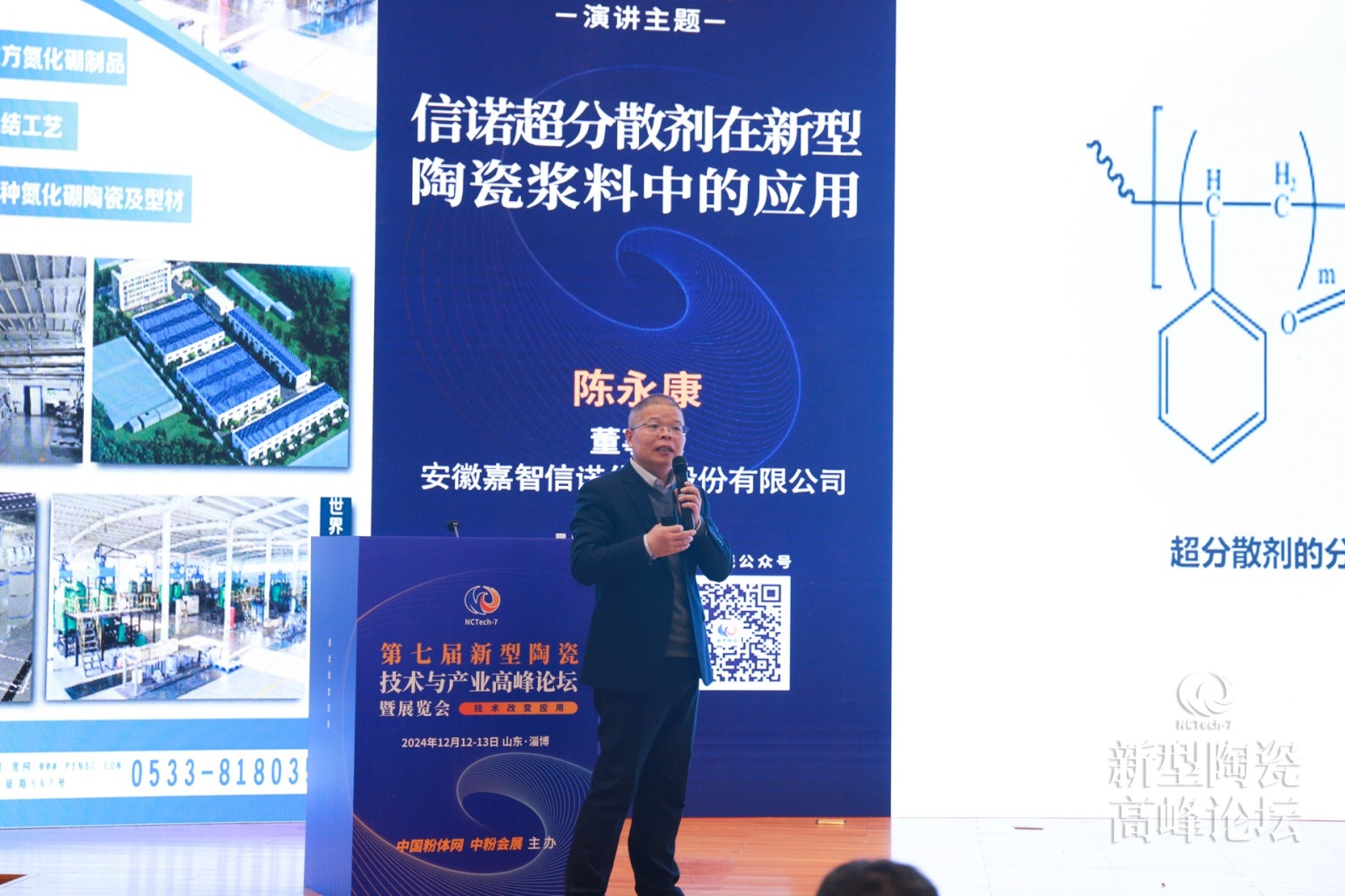 安徽嘉智信諾化工股份有限公司董事長陳永康作《信偌超分散劑在新型陶瓷漿料中的應用》報告