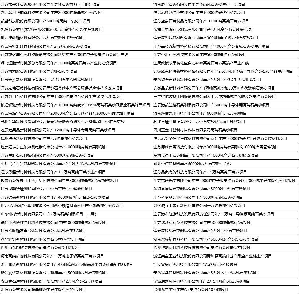 據不完全統計,國內規劃/新建/擴產的高純石英砂產能合計約已達100萬噸以上。