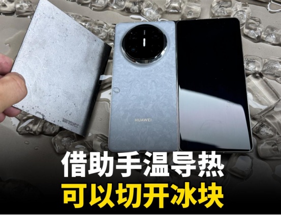 近日,在華為Mate品牌盛典上發布了最新款折疊屏手機Mate X6,其采用革新散熱技術,搭載分布式玄武架構還采用了超高導熱石墨烯材料,散熱效果提升33%。余承東介紹用這一材料切冰塊就像切豆腐一樣,通過手的溫度傳導到石墨烯散熱片上切割冰塊如同切豆腐一般絲滑,直觀展現其強大導熱能力。