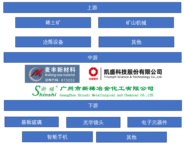 稀土拋光粉行業(yè)產(chǎn)業(yè)鏈上游原材料為稀土,目前我國(guó)稀土拋光材料的市場(chǎng)份額占拋光材料市場(chǎng) 85%以上,近些年,為保護(hù)和合理開發(fā)優(yōu)勢(shì)礦產(chǎn)資源,相關(guān)部門多次對(duì)部分礦種進(jìn)行保護(hù)性和限制性開發(fā),稀土礦、鎢礦等都曾是我國(guó)特定礦種,實(shí)行開采總量控制,由于資源的有限性,我國(guó)稀土拋光粉行業(yè)面臨較大的上游行業(yè)風(fēng)險(xiǎn)。稀土拋光粉行業(yè)下游主要是光學(xué)玻璃、蓋板玻璃、電子元器件、智能手機(jī)等行業(yè)。