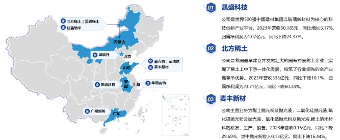 國(guó)內(nèi)稀土拋光粉生產(chǎn)商主要有凱盛科技、北方稀土、麥豐新材、廣州新稀、昊銳稀土、華明高納、鑫方園、佳鑫納米、榮瑞達(dá)、國(guó)瑞升等。其中凱盛科技是世界500強(qiáng)中國(guó)建材集團(tuán)以玻璃新材料為核心的科技創(chuàng)新產(chǎn)業(yè)平臺(tái)。北方稀土是我國(guó)最早建立并發(fā)展壯大的國(guó)有控股稀土企業(yè),實(shí)現(xiàn)了稀土上中下游一體化發(fā)展,構(gòu)筑了行業(yè)領(lǐng)先的全產(chǎn)業(yè)鏈競(jìng)爭(zhēng)優(yōu)勢(shì)。麥豐新材主營(yíng)業(yè)務(wù)為稀土拋光粉及拋光液,二氧化硅拋光液,氧化鋁拋光粉及拋光液,氧化鋯拋光粉及拋光液,稀土納米材料的研發(fā)、生產(chǎn)、銷售。