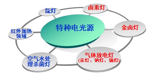 透明石英玻璃由于具有從紫外區到紅外區優良的光透過性和耐熱性,所以廣泛使用于水銀燈、超高壓水銀燈、氙燈、紫外線燈、碘鎢燈、鹵素燈、氣體激光用燈、金屬鹵化物燈等電光源。