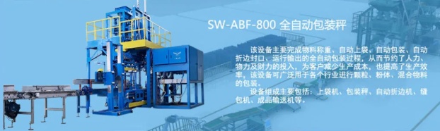 3、全自動包裝秤SW-ABF-800可以應用在任何需要使用包裝袋包裝的工藝生產線,實現物料包裝過程的自動化。