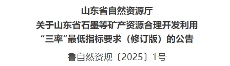 近日,山東省自然資源廳發布《山東省石墨等礦產資源合理開發利用“三率”最低指標要求(修訂版)》(征求意見稿),公開征求石墨、水泥用灰巖、耐火粘土、巖鹽、冶金用白云巖、長石、金剛石資源合理開發利用“三率”最低指標。