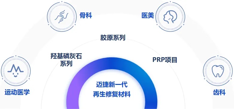 邁捷生命科學聚焦新型再生材料,提供自研新一代、具有更高生物相容性的修復、填充材料,解決多場景的臨床痛點。公司專注動物提取,具備全套底層技術,重點打造天然原料的來源與工藝,建立了以醫美為核心,橫跨醫美、骨科、運醫、口腔的平臺公司。原材料端,公司自主把控上游供應鏈,確保原料供應穩定一致,合規有效。工藝端,公司掌握全套前處理工藝,保障臨床實驗及產品供應安全,符合國家法規要求;公司擁有羥基磷灰石再生產品轉化和生物醫用膠原蛋白交聯技術兩大技術平臺,提供全產業鏈閉環的再生生物材料解決方案。
