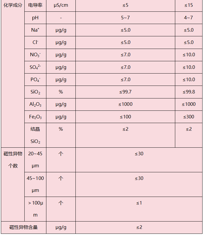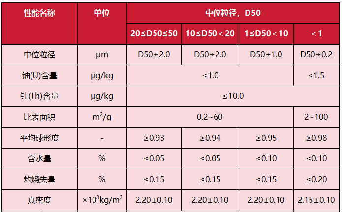 集成電路封裝用低放射性球形氧化硅微粉主要性能指標
