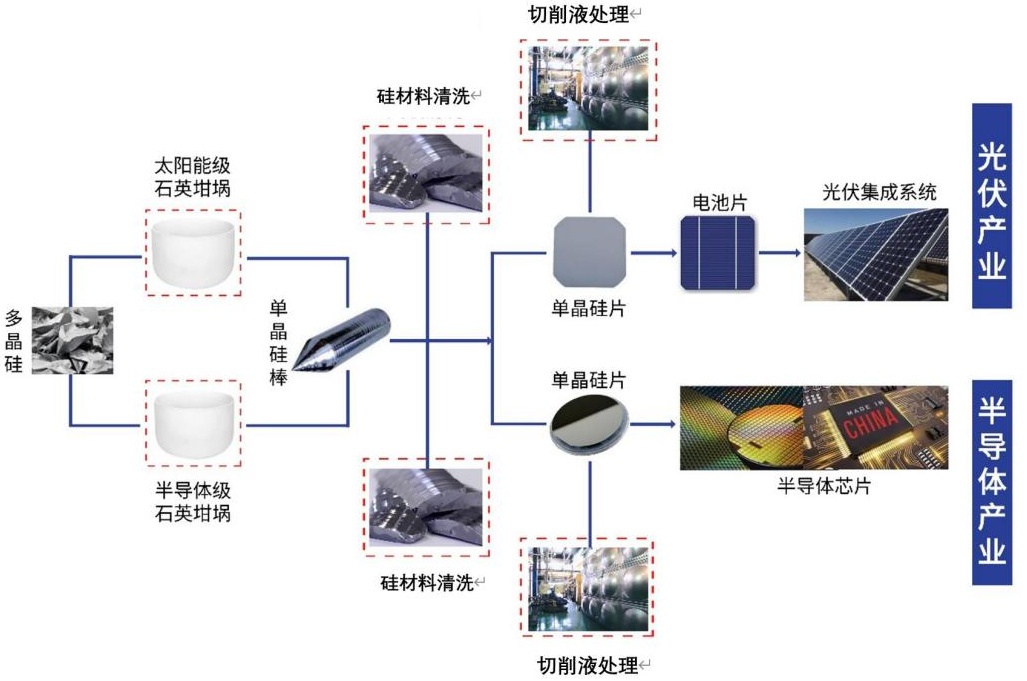 歐晶科技立足于單晶硅材料產業鏈,主要為太陽能級單晶硅棒硅片的生產和輔助材料資源回收循環利用,提供配套產品及服務,具體包括石英坩堝產品、硅材料清洗服務、切削液處理服務。