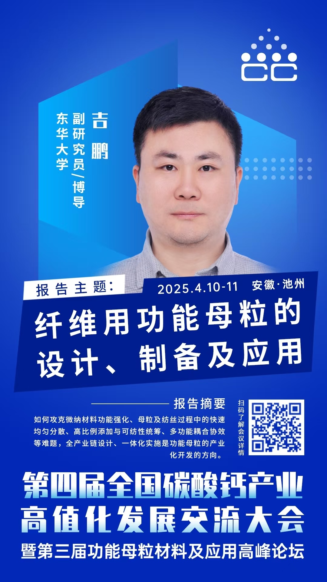 如何攻克微納材料功能強化、色母粒及紡絲過程中的快速均勻分散、高比例添加與可紡性統籌、多功能耦合協效等難題,全產業鏈設計、一體化實施是功能色母粒的產業化開發的方向。2025年4月10-11日,由中國粉體網主辦的第四屆全國碳酸鈣產業高值化發展交流大會將在安徽·池州舉行,屆時東華大學副研究員吉鵬將在大會上作《纖維用功能母粒的設計、制備及應用》主題報告,從全產業鏈設計、一體化實施的角度講解纖維用功能母粒相關的技術成果和應用案例。
