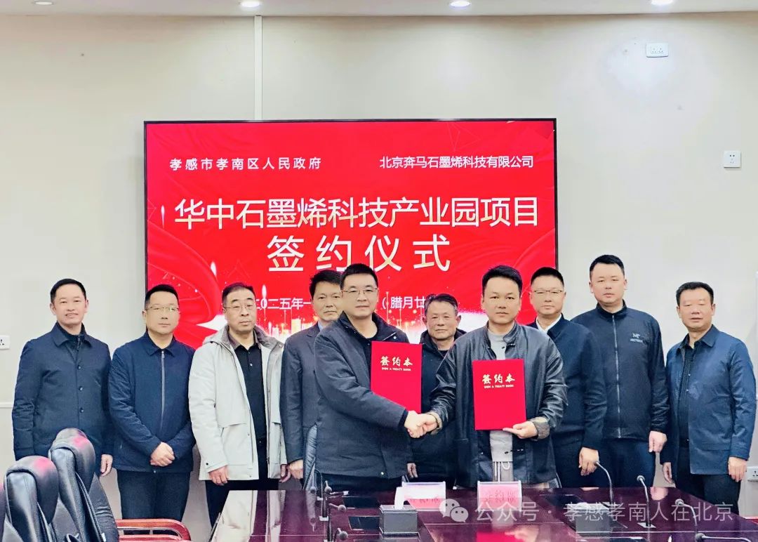 中國粉體網訊 近日,總投資35億元的華中石墨烯科技產業園項目正式落戶湖北孝感市孝南區東山頭辦事處,為區域經濟發展注入了強大的動力。孝南區人民政府與北京奔馬石墨烯科技有限公司在區政府會議室隆重舉行了項目簽約儀式。