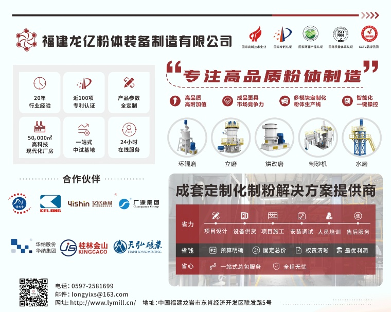 福建龍億粉體裝備制造有限公司是一家專業研發、制造、銷售粉體制備生產線的國家高新技術企業,為國內外客戶提供從烘干、破碎、輸送、研磨、分級、整形、改性到成套設備生產線的設計、制造、安裝、調試、培訓等粉體制備全套工程服務,同時提供優質的定制化技術支持和專業化保障服務。