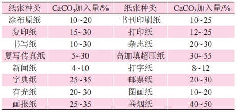納米碳酸鈣在卷煙紙、雜志紙、字典紙、新聞紙、書籍紙中的填充量達(dá)5%~30%。而在定量涂布紙、無(wú)光澤銅版紙等特殊紙制品中,納米碳酸鈣含量甚至高達(dá)80%以上,具有獨(dú)特的優(yōu)越性能。也有研究指出,納米碳酸鈣作為造紙?zhí)盍希捎迷谔厥饧堉破返闹谱鞣矫,如尿不濕、衛(wèi)生巾、彩噴打印紙、紙巾及透氣膜等。