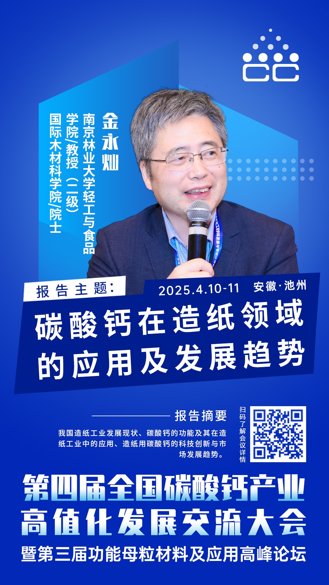 2025年4月10-11日,由中國(guó)粉體網(wǎng)主辦的第四屆全國(guó)碳酸鈣產(chǎn)業(yè)高值化發(fā)展交流大會(huì)將在安徽·池州舉行,屆時(shí)南京林業(yè)大學(xué)金永燦教授將在大會(huì)上作《碳酸鈣在造紙領(lǐng)域的應(yīng)用及發(fā)展趨勢(shì)》主題報(bào)告,分析碳酸鈣在造紙行業(yè)的應(yīng)用價(jià)值和發(fā)展趨勢(shì),與參會(huì)嘉賓一起交流造紙專用的高附加值碳酸鈣生產(chǎn)技術(shù)。