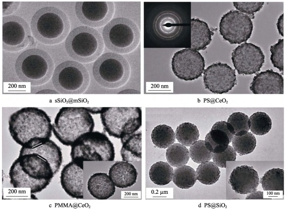 核-殼結(jié)構(gòu)復(fù)合磨粒透射電鏡圖 來(lái)源:孟凡寧等,化學(xué)機(jī)械拋光液的研究進(jìn)展