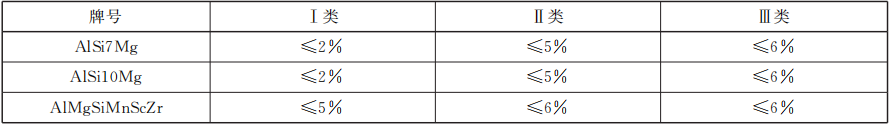 分類與性能:產品按化學成分分為三種牌號,分別為AlSi7Mg、AlSi10Mg和 AlMgSiMnScZr;按粒度分為Ⅰ類(15~53μm,激光粉末床熔融)、Ⅱ類(20~63μm,激光粉末床熔融)和Ⅲ類(53~150μm,激光定向能量沉積),三類規定松裝密度分別≥1.20g/cm³、1.28g/cm³和1.40g/cm³;三類振實密度分別≥1.40g/cm³、1.50g/cm³和1.60g/cm³;Ⅰ類、Ⅱ類產品的流動性≤130s/50g,Ⅲ類產品的流動性≤100s/50g。空心粉率如下圖: