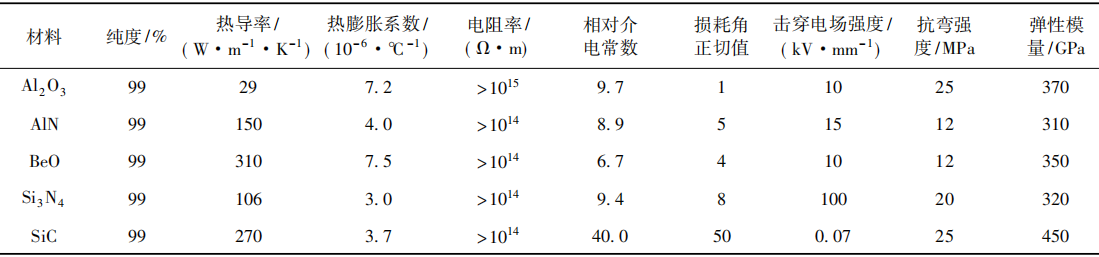 作為封裝基板,要求陶瓷基片材料具有如下性能: