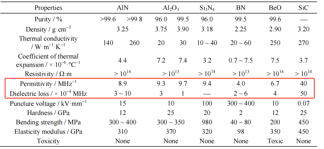 目前,常用電子封裝陶瓷基板材料包括氧化鋁、氮化鋁、氮化硅、氧化鈹等。