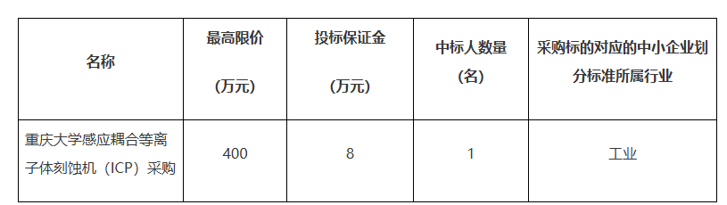 項目名稱:重慶大學(xué)感應(yīng)耦合等離子體刻蝕機(ICP)采購