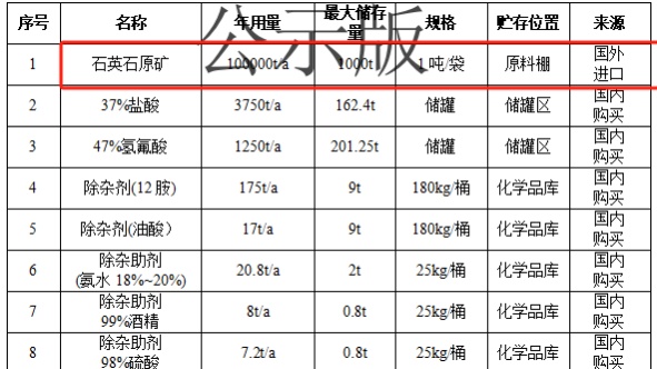 據該項目環評資料顯示,其高純石英原料來源為國外進口。