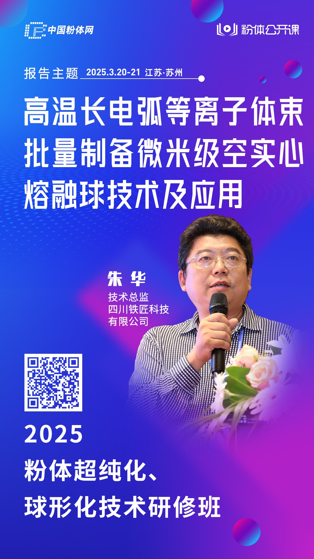 中國粉體網定于2025年3月20日至21日舉辦“2025粉體超純化、球形化技術高級研修班”,特邀四川鐵匠科技有限公司技術總監朱華為大家詳細講解高溫長電弧等離子體束批量制備微米級空實心熔融球技術及應用,歡迎大家一起來學習探討!