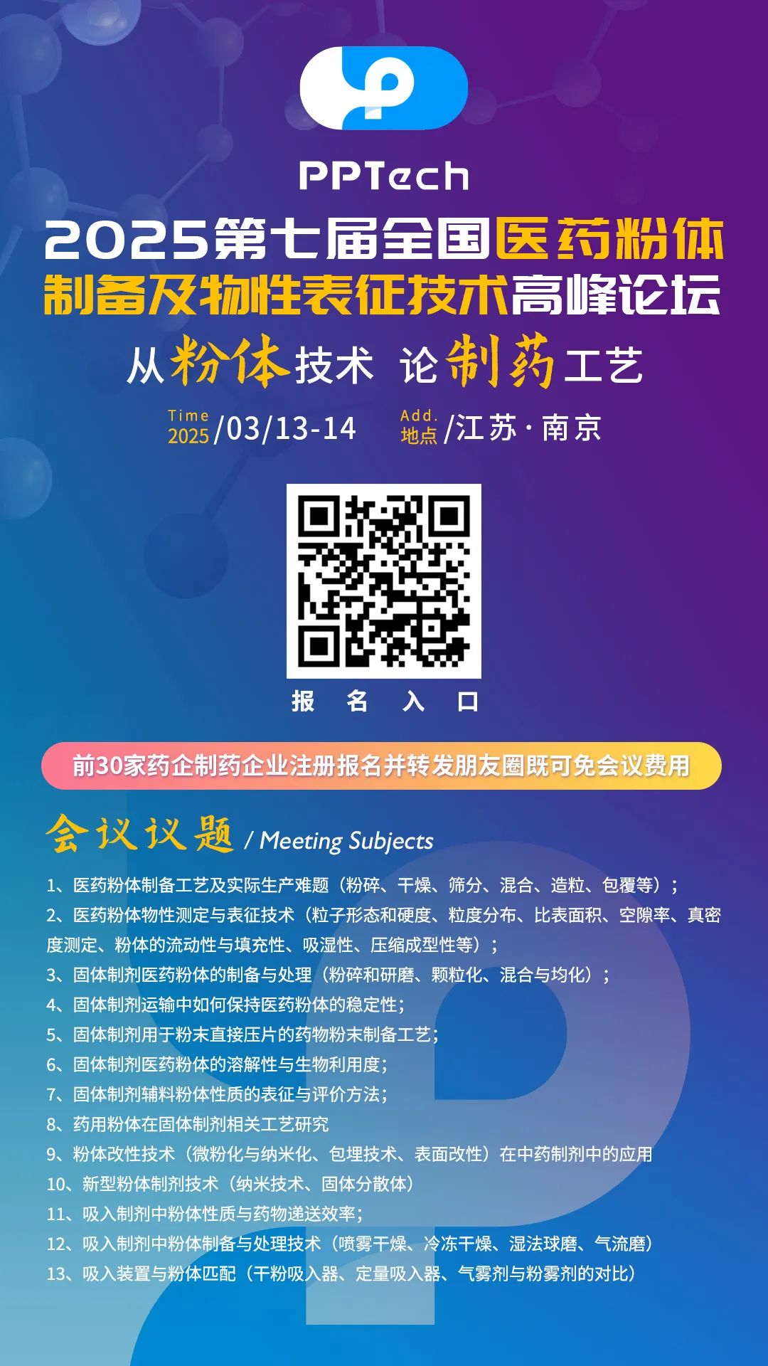 “第七屆全國醫(yī)藥粉體制備及物性表征技術(shù)高峰論壇”將在南京紫晶國際酒店舉行,江蘇先聲藥業(yè)有限公司邀您一同參加。